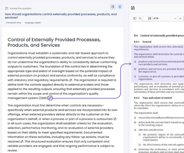 - Bring Your Own Documents (BYOD): Your team uploads and curates the sources you trust—policies, reports, standards, publications, and internal documentation.