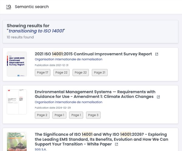 - Upload and curate your authoritative sources once, then search by meaning and filter precisely.